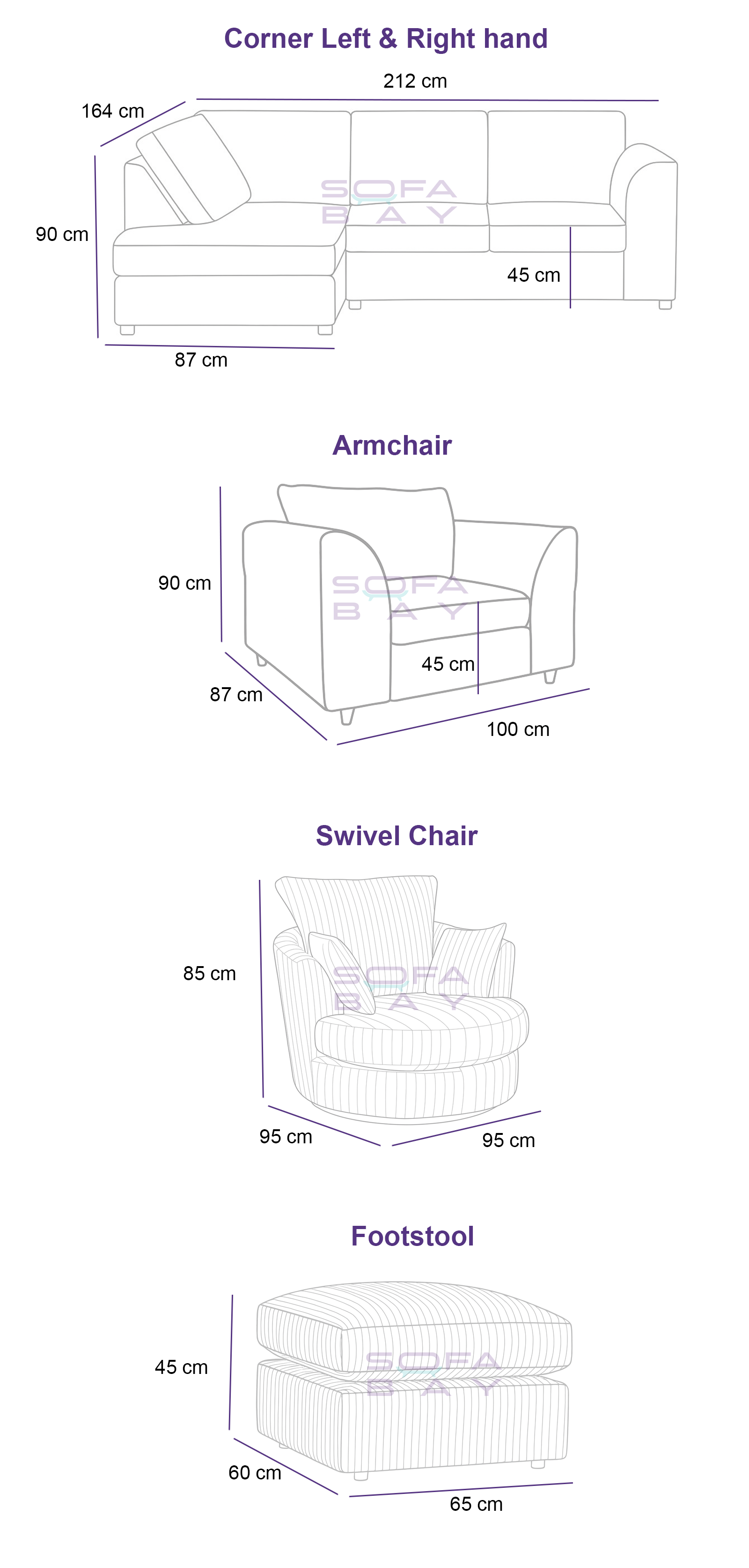 Corner Sofas: Arrive in 2 or 3 pieces, joined neatly at the corner. This split makes it easy to fit through a standard doorway and into your home.